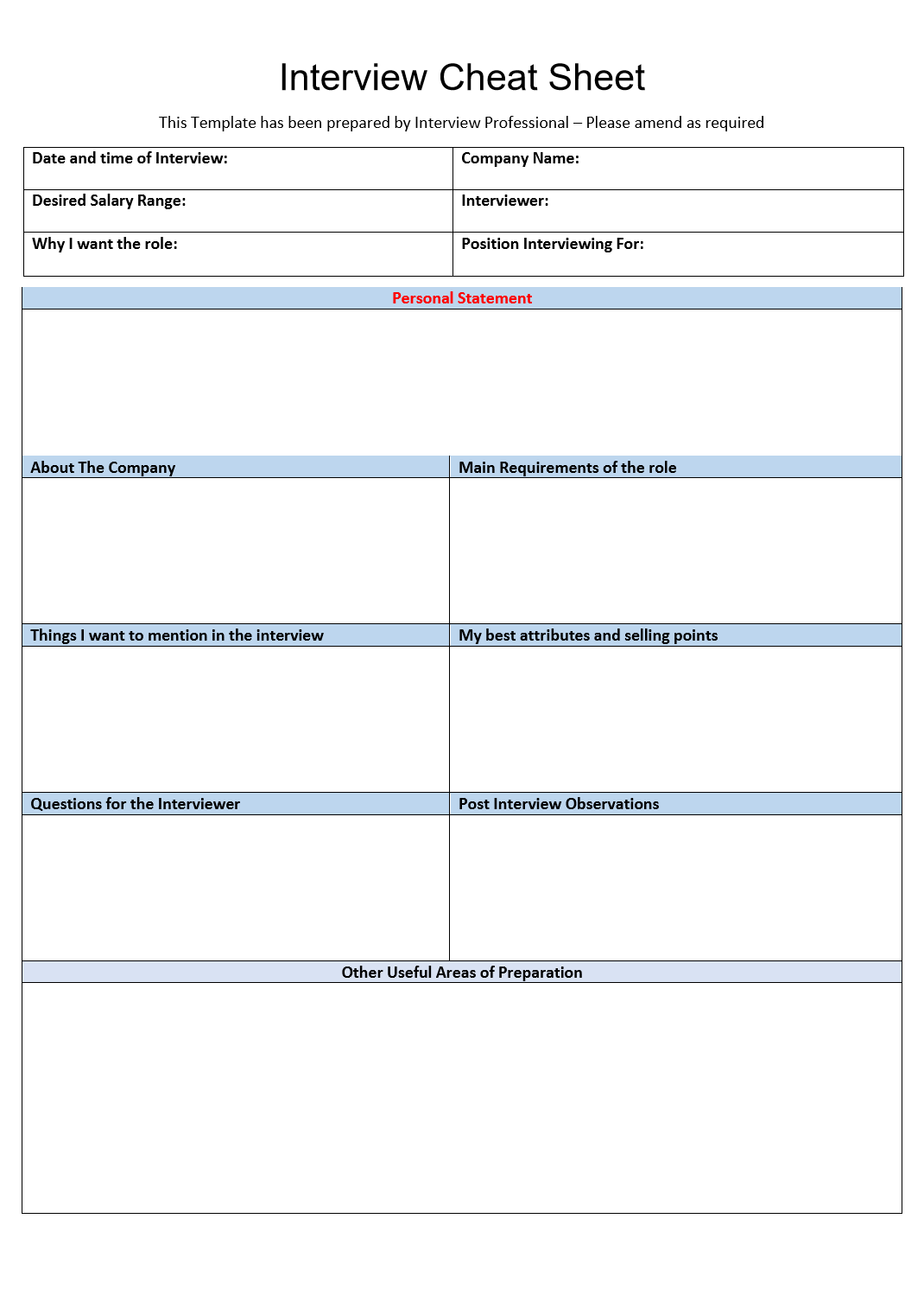 Interview Cheat Sheet Template 4 – Interview Prof…